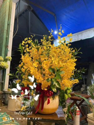 Hoa khai trương – Kệ hoa rực rỡ sắc màu, mang ý nghĩa phát tài phát lộc.