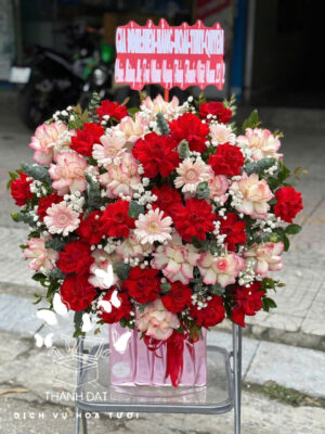 • Kệ hoa khai trương bắt mắt, banner thiết kế theo yêu cầu