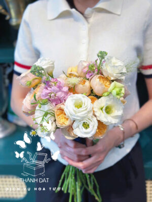 Giá chỉ từ 550.000đ – 2.500.000đ, phù hợp với mọi ngân sách. Bạn cũng có thể yêu cầu thiết kế hoa theo màu sắc phong thủy, mệnh tuổi hoặc cá tính người nhận.