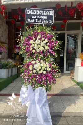Hoa chia buồn: Vòng hoa trang trọng, kệ hoa trắng tím